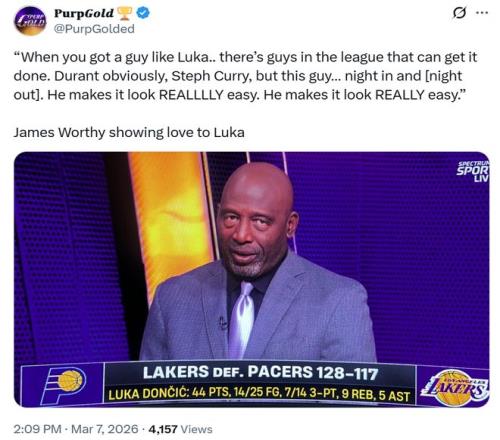 正如賽後湖人名宿沃西對於東契奇的評價,聯盟中也有幾位球員能夠做到這一點,例如杜蘭特和庫裏,但東契奇出色的點在於他每個夜晚都能在進攻端做到這一點,並且看起來輕輕鬆鬆。