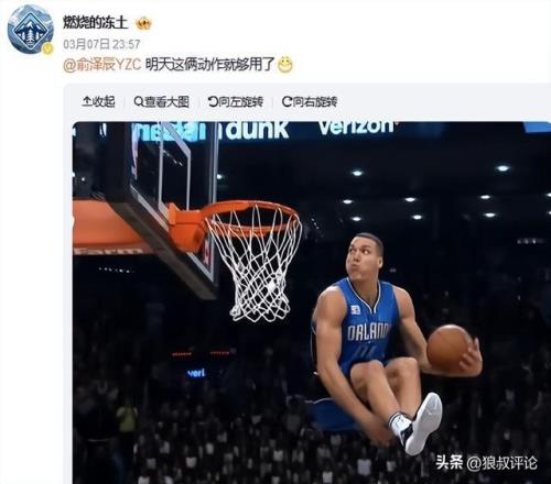 有球迷和博主調侃俞澤辰使用戈登和拉滿兩個經典動作。
