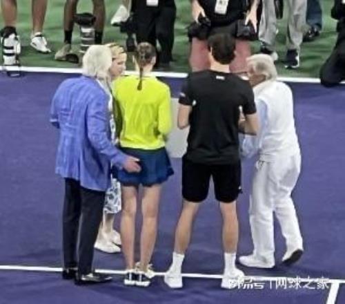 當地時間3月6日,新科澳網冠軍萊巴金娜搭檔美國名將弗裏茨奪得了本屆賽事慈善混雙賽的冠軍,捧走了20萬美元的獎金 。這本該是一個屬於網球、屬於勝利的閃光時刻,然而在隨後的頒獎合影環節中,意外發生了。