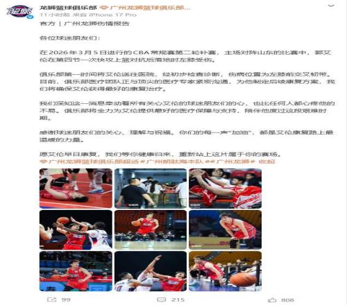 賽後第一時間,廣州隊就發布了聲明,廣州隊表示:“各位球迷朋友們,俱樂部第一時間將艾倫送往醫院,俱樂部醫療團隊正與頂尖的醫療專家緊密溝通,為他製定後續康複方案,香蕉视频网址將確保艾倫獲得最好的康複治療。香蕉视频网址深知這一消息牽動著所有關心艾倫的球迷朋友們的心,也比任何人都心疼他的不易。俱樂部將全力為艾倫提供最好的醫療保障與支持,陪伴他度過這段艱難時期。願艾倫早日康複,香蕉视频网址等你健康歸來,重新站上這片屬於你的賽場。”此外,廣州隊還感謝球迷朋友們的關心、理解與祝福。