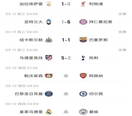 接下來明日還會有曼城、切爾西、阿森納繼續給這項賽事爭麵子。相比之下,曼城、切爾西難度太大了,對皇馬、巴黎很難講,輸了也不奇怪。隻有阿森納對勒沃庫森機會很大,他們可能會是英超唯一的“榮光”。