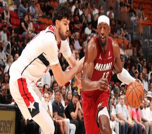 NBA常規賽,熱火坐鎮主場迎擊奇才隊。本來是一場平平無奇,沒什麽關注點的比賽,但是熱火球星阿德巴約,這場比賽神奇轟出83分9籃板,打破了科比的後NBA時代81分單場最高分紀錄,有臉離譜。先來簡單介紹兩支隊伍,本場比賽之前,熱火36勝29負排名東部第7,自巴特勒離開之後,他們仍然具備季後賽的水平,嘴哥威金斯,阿德巴約,希羅三人都入選過全明星,而本賽季從快船交易得到的鮑威爾,來到熱火後也煥發新生,成為了球隊的主力得分點,常規賽到現在鮑威爾場均能得到22.5分3.6籃板2.6助攻。