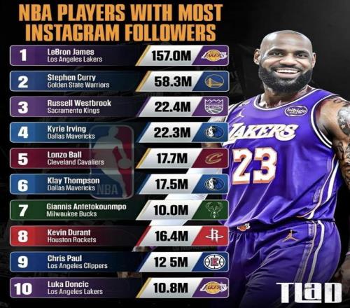 這份榜單能看出的,主要還是個人曝光、話題度和長期關注積累,而不是單純的場上表現。像詹姆斯、庫裏這種長期站在聯盟中心的人,天然就更容易把粉絲數越拉越高;而後麵這些球員,哪怕在比賽裏同樣有很強的存在感,放到社媒層麵,差距依然會被放大。所以這份榜單真正有看點的地方,不在於誰打得更強,而在於誰在球場之外也早就成了跨圈層的公眾人物。