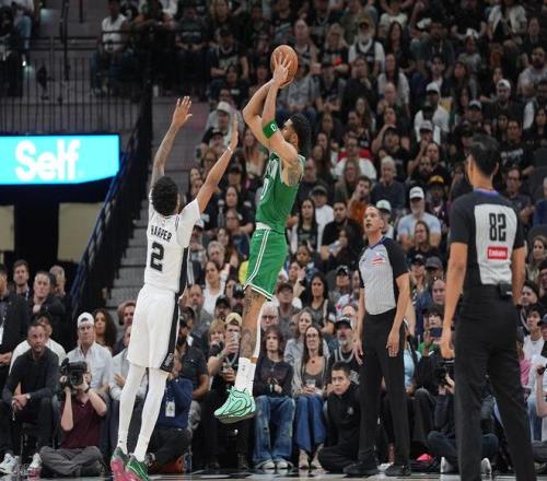 次節比賽,兩隊的爭奪依舊白熱化,豪澤開局命中3分,布萊恩特3分繼續進,懷特上籃拿2分,福克斯命中3分,又搶斷反擊拿2分,馬刺反超1分!小羅恩·哈珀3分再進,布萊恩特後仰命中2分,懷特突破上籃拿2分,豪澤弧頂3分轟進,布朗強突拿2分,綠軍領先7分。隨後,文班外線爆發,連續命中2個3分,布朗跳投拿2分,懷特命中3分,綠軍依舊領先6分!卡斯爾罰球拿2分,文班單臂暴扣,分差來到2分!布朗持球被卡斯爾推到場外,裁判吹出界,布朗情緒失控,上來就要揍裁判,直接被驅逐!隨後馬刺罰球追平比分,塔圖姆連拿5分,文班命中3分,懷特罰球拿2分,馬刺連追4分!半場打完,兩隊戰至58分!