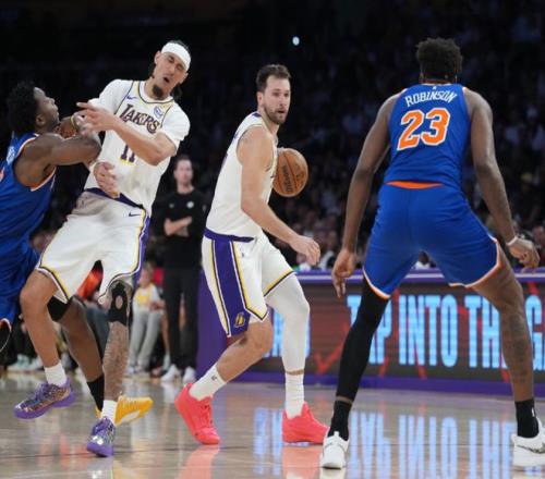 簡單總結:東契奇+裏夫斯組合帶領的湖人,一般球隊還真打不過!就以最近兩場比賽為例,麵對東部第三的尼克斯,尼克斯本賽季進攻效率119.2聯盟第三,但在湖人身上隻拿到可憐的97分!尼克斯熟悉的快攻打不出來,陣地戰除了唐斯這一點,其他人都沒辦法,湖人防守回合各司其職,沒有出現故意假擋拆,把布倫森讓給隊友防守的情況。和森林狼一戰,湖人雙核裏夫斯和東契奇都是一度出現8中1,但湖人竟然還能咬住比分,到下半場兩位核心找回手感後,單節贏16分打花比賽,森林狼全隊得分最高的愛德華茲,15中2!