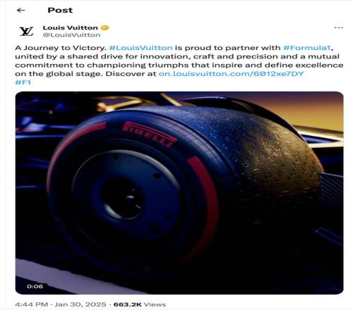 與此同時,F1 的全球商業讚助也在不斷升級。2024 年,奢侈品集團 LVMH 與 F1 簽署長期合作協議,總合同規模大約十億美元,這在體育與奢侈品融合中屬於標誌性事件。