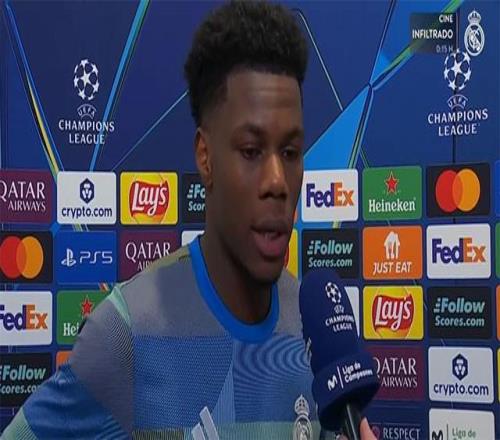 歐冠1/8決賽首回合,皇馬在主場3-0完勝曼城,中場大將楚阿梅尼賽後在混合區接受了俱樂部官網的采訪。