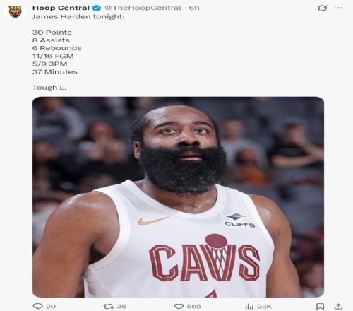 賽後這場比賽哈登拿到30+輸球了,但他登場的比賽騎士9勝3負依舊出色,這位36歲的老將依舊存在聯盟頂級戰力。