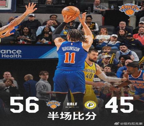 次節比賽,尼克斯進攻火力升級本場首次單節得分30+,步行者連續兩節單節不足25分。尼克斯率先擴大34-26領先優勢,步行者一波9-0攻勢反超,布倫森攻傳結合引領一波11-2攻勢反超8分。步行者連追5分,尼克斯繼續擴大兩位數領先優勢,尼克斯單節32-24淨勝8分,上半場結束尼克斯56-45領先步行者。前兩節比賽,尼克斯三分13中4,布倫森17中9得到23分與阿奴諾比12+4+4;步行者三分17中4,全隊沒有球員得分上雙,祖巴茨9+4。