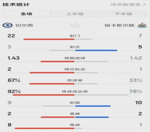 戰術硬傷:無效傳控成癮,攻防脫節致被動。全場數據呈現詭異反差:切爾西控球率67%、射門22腳,碾壓紐卡的33%控球率和7腳射門,傳球成功率92%也遠超對手的78%,但這樣的“優勢”卻未能轉化為進球,反而被對手抓住一次反擊一劍封喉。第18分鍾,利夫拉門托直塞、威洛克橫傳助攻隊友破門,這粒簡潔高效的反擊進球,狠狠戳破了切爾西傳控戰術的偽善麵紗。球迷的吐槽直擊要害:“別tm踢傳控了,沒這個能力懂不懂?能完美踢傳控的也就巔峰巴薩西班牙了,你破車這幫什麽人?也硬踢傳控!” 藍軍的傳控始終停留在“無效倒腳”層麵,恩佐遠射擊中隊友、裏斯·詹姆斯任意球偏出、下半場擊中立柱,看似運氣不佳,實則是戰術適配性不足、進攻缺乏穿透力的真實寫照。