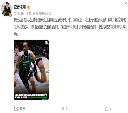 北控想要衝擊季後賽,需要即戰力。帕克是那種能一場砍30分的球員,但他要的是尊重。非保障合同,不是尊重。