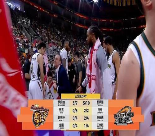 後半節杜鋒重新換回薩林傑胡明軒,4分23秒王嵐嶔再中追身三分,4分04秒,薩姆納終於回敬三分打開了廣東隊的三分賬戶,但無語的是,半場轟下16分的薩姆納隨後卻被杜鋒撤下。