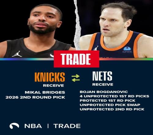 2024年夏天,尼克斯從籃網得到布裏奇斯和1個次輪簽,送出去的是博揚、5個首輪簽、1個首輪互換權和1個次輪簽。5個首輪裏有4個是自己的,全是無保護,還有一個是雄鹿的2025年前4保護首輪。