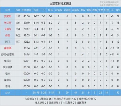 小賈巴裏-史密斯22分8板、阿門19分12板5助4失誤。杜蘭特18分5板2助7失誤,下半場5中1僅得2分,出現6次失誤。最後看看數據,說說你的心情: