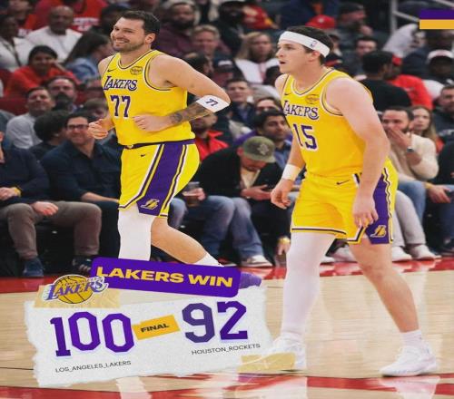斯瑪特和艾頓連得5分,末節最後1分鍾,湖人領先到6分。最後43.4秒,艾頓籃下拋投,殺死比賽的一球。艾頓迷失三節,最後時刻支棱起來。暫停回來,火箭失誤,詹姆斯快攻暴扣。最終湖人100-92戰勝火箭,保住西部第三。