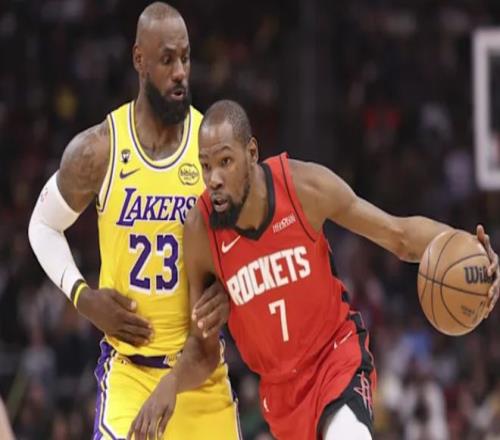 湖人擊墜火箭,勒布朗vs杜蘭特打一場少一場的對決:勒布朗上半場4分,下半場14分;杜蘭特上半場16分,下半場勝負已定才得了2分。