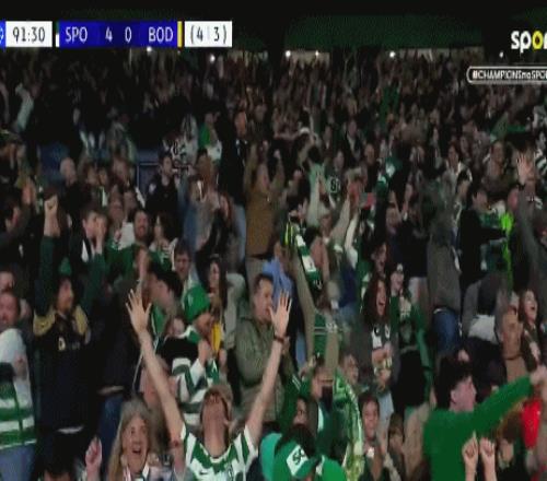 馬克西-阿勞霍瘋狂滑跪慶祝,現場的5萬葡萄牙體育球迷一片狂歡!在葡萄牙體育潮水般的攻勢下,博德閃耀已經被打懵,失去還手之力。