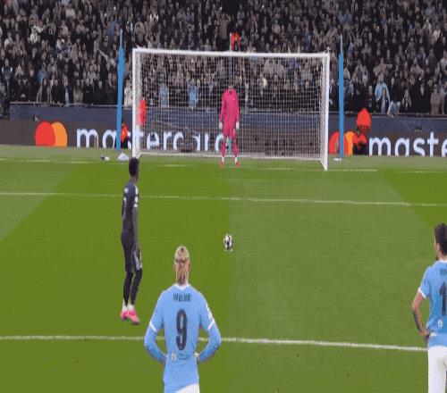 第41分鍾,曼城開出戰術角球,多庫的傳中被阿諾德擋了一下,哈蘭德將球打進空門,打破4場進球荒。