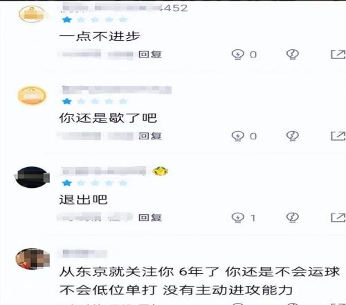 “光漂亮有啥用?上去溜達一圈送3分?”“6分鍾3失誤,這是職業球員?”“大空位都不敢投,要不咱退了吧?”,各種負麵評論紛至遝來。
