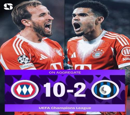 歐冠1/8決賽次回合,拜仁主場4-1戰勝亞特蘭大,兩回合總比分10-2淘汰亞特蘭大晉級1/4決賽。