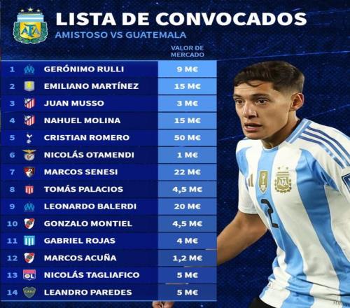 阿根廷國家隊新一期大名單德轉身價榜: