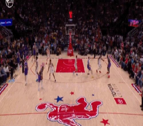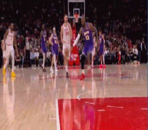 還有這樣一馬當先跑贏全場的超遠滑翔戰斧暴扣,直接打停火箭