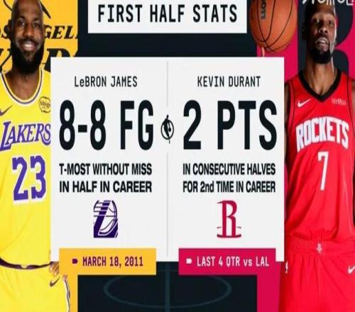值得一提的是,這是詹姆斯生涯第二次上半場8中8,無巧不成書,上次正好是15年前的今天。