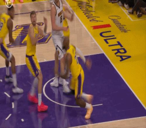 湖人還是得靠41歲的老詹,詹姆斯為裏夫斯擋拆後順下,空接暴扣2+1追平比分