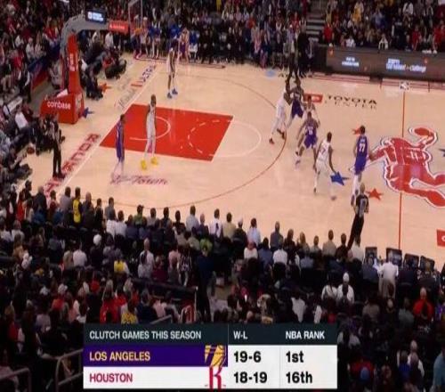 關鍵時刻湖人戰績19勝6負聯盟第1,火箭18勝19負第16