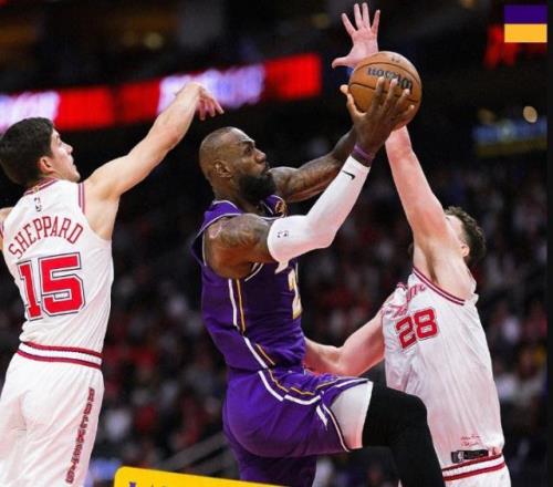 東契奇成為主導球隊進攻的第一選擇,詹姆斯則通過無球影響力盤活著湖人的反擊與陣地表現。在這一場比賽裏,“詹姆斯下快攻”不再是一句充滿譏諷意味的調侃,而是火箭內線拉響的防空警報。