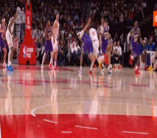 鬼魅傳球給到八村,明顯偏出居然顛進