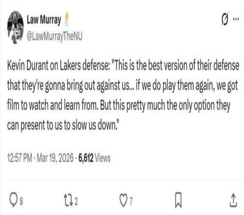 顯然連續遭遇湖人雙殺,作用與數據遭詹姆斯碾壓的杜蘭特並不服氣,哪怕連續兩場他都被包夾鎖死。
