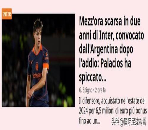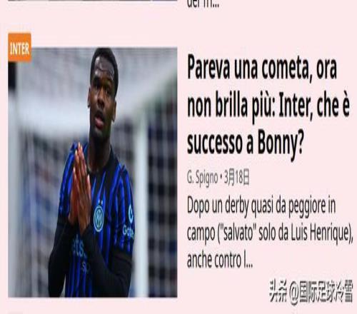 有趣的是,粉紅報紙一邊在批評國米沒有給帕拉西奧斯這位阿根廷新國腳以信任,對年輕球員缺乏耐心,這是不對的;另一邊,對同樣是年輕新星的博尼,不過幾場沒進球,意媒就連番惡語抨擊,好一頓瘋狂輸出,完美體現出了什麽叫做“雙標”。