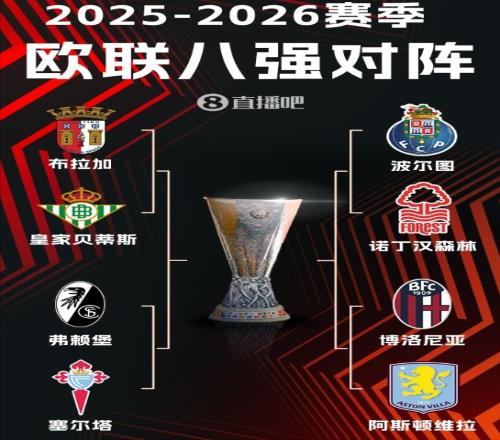 就此,八強對陣分別是布拉加對貝蒂斯、弗萊堡對塞爾塔、波爾圖對諾丁漢森林、博洛尼亞對阿斯頓維拉。歐聯杯的1/4決賽第一回合將在4月8日、10日開打,之後次回合會在16日、17日開打。