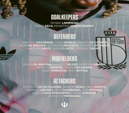 比利時隊名單:德布勞內、盧卡庫、多庫、奧蓬達、特羅薩德在列