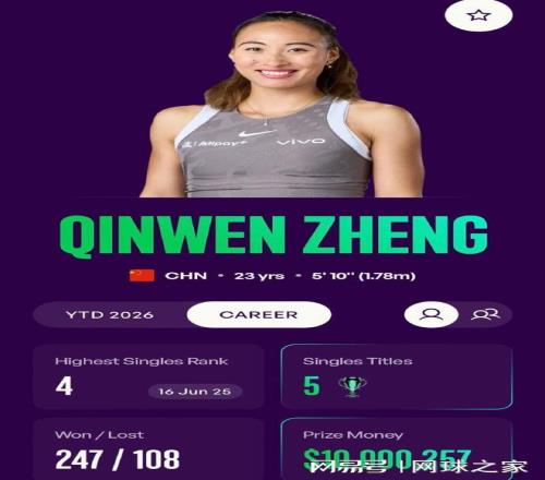 中國一姐鄭欽文確認出戰這項賽事,同時,還有一條關於小鄭同學的好消息傳來,這就是WTA官網最新數據顯示,在印第安維爾斯站之後,鄭欽文的職業生涯總獎金突破了1000萬美元,成為繼李娜和張帥之後,第三位達成這一成就的中國大陸球員。恭喜她!