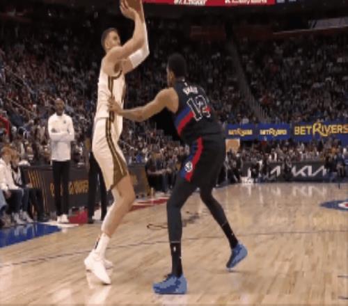 除了傷退以外波神在場其實還有一個尷尬鏡頭,第一節最後時刻他在弧頂和波傑姆斯基配合完伸手要球,但後來直接被缽缽雞無視,後者寧願頂著對手幹拔壓哨都不肯傳位置更好的他。