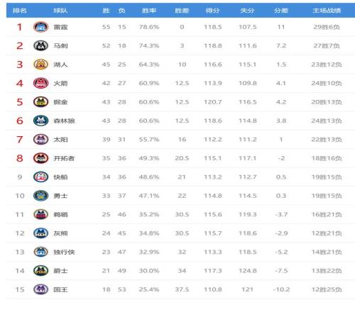 今日比賽後西部火箭、掘金、森林狼排名互換,快船、開拓者排名互換,鵜鶘、灰熊排名互換。