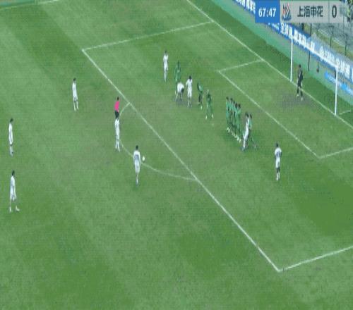 3分鍾後,申花獲得前場位置相當好的任意球,陳晉一圓月彎刀,皮球直掛死角。憑借這一世界波,兩隊回到同一起跑線。