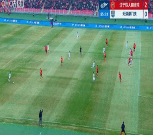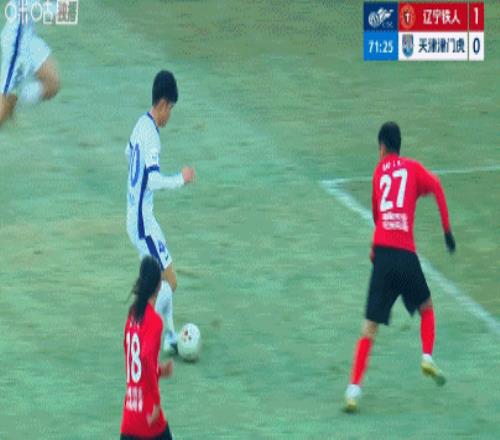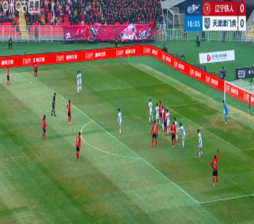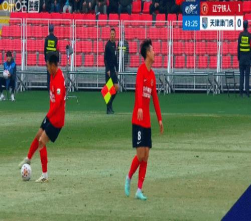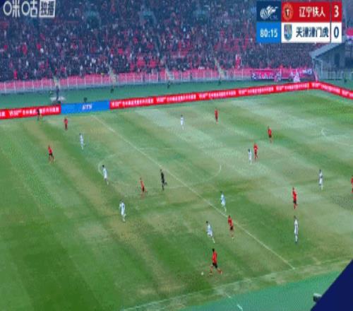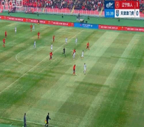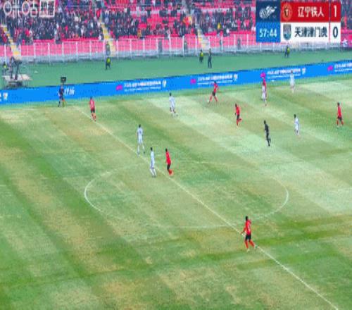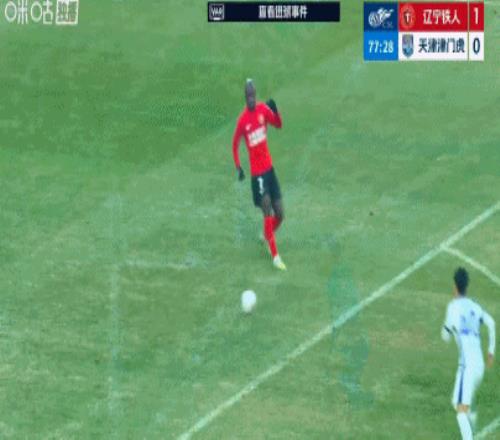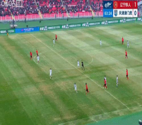 第77分鍾,邦本宜裕傳中,安以恩原地擺腿兜射破門,遼寧鐵人2-0!