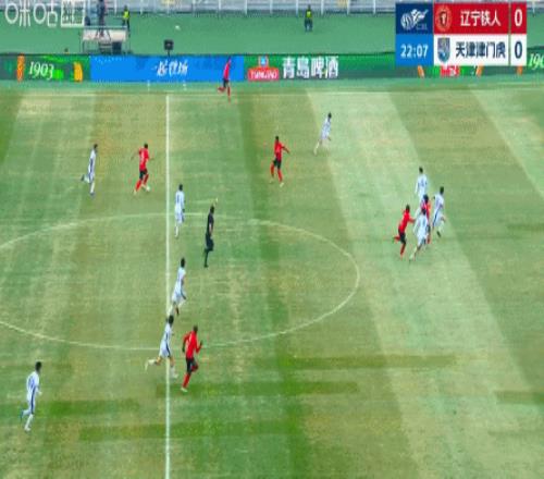 第36分鍾,遼寧鐵人反擊,嚴鼎皓閃開空當打門偏出