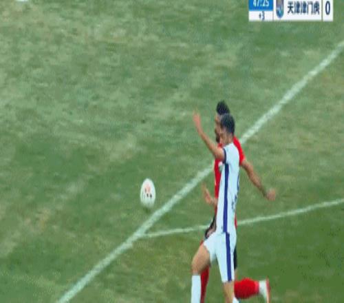 第45+3分鍾,津門虎球員投訴費利佩禁區內手球,主裁判未予判罰