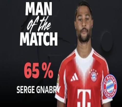 德甲第27輪,拜仁慕尼黑主場4-0大勝柏林聯合,此役上演梅開二度的拜仁前鋒格納布裏當選德甲官方全場最佳球員。