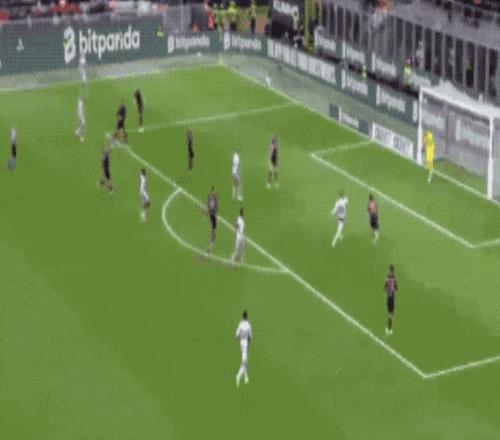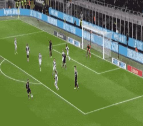 第36分鍾,帕夫洛維奇外腳背撩射,皮球劃過一道優美的弧線,越過門將頭頂,米蘭取得領先。