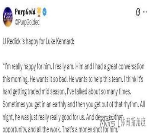 我常常跟球員賽季中途被交易,那簡直就是一場巨大的挑戰,就像在茫茫大海中突然改變航向,很容易讓球員陷入迷茫和低迷,丟失原本熟悉的比賽節奏。但肯納德這場比賽的表現,簡直讓我眼前一亮。整場比賽,他就像球隊的秘密武器,在進攻和防守兩端都貢獻巨大。他積極跑位,為隊友創造機會,防守時也毫不含糊,緊緊盯防對手。他完全配得上這次絕殺的機會,所有的努力在這一刻都得到了最完美的回報,這記三分球,簡直就是價值連城的無價之寶,為球隊帶來了至關重要的勝利。”
