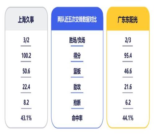 上海隊近期已取得9連勝,主場更是斬獲16連勝。雙方前兩回合爭奪,廣東隊在首場失利後於二番戰提升攻防狀態和比賽韌勁,與對手展開廝殺,無奈因內線失勢最終反撲未果。迎來第三次交鋒,雙方陣容也隨著部分球員的傷愈複出更趨完整,廣東隊在對方“魔鬼主場”作戰的情況下需放平心態,力拚對手。