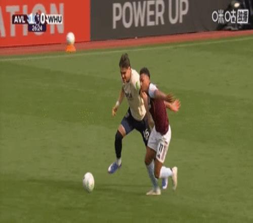 上半場補時階段,維拉前場右側開出角球,沃特金斯高高躍起,結果在馬夫羅帕諾斯的幹擾下將球頂高。