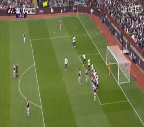 第49分鍾,巴克利前場搶斷,禁區外直接起腳射門,西漢姆聯門將赫爾曼森極限撲救,單掌將球托出橫梁。