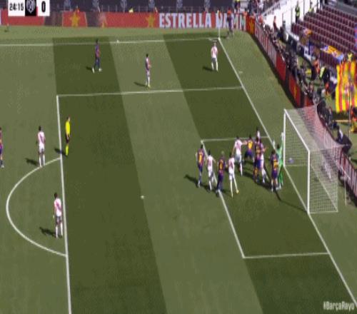 連續浪費機會的巴薩,在第24分鍾利用角球的機會,由阿勞霍破門得分,在主場取得了1-0的領先,6分鍾之後,拉菲尼亞再次獲得機會,大禁區外的迎球怒射被客隊門將撲了一下後,擊中門框被彈出,半場比賽結束前,費爾明禁區內踢倒巴列卡諾進攻球員,但主裁判沒有任何表示。