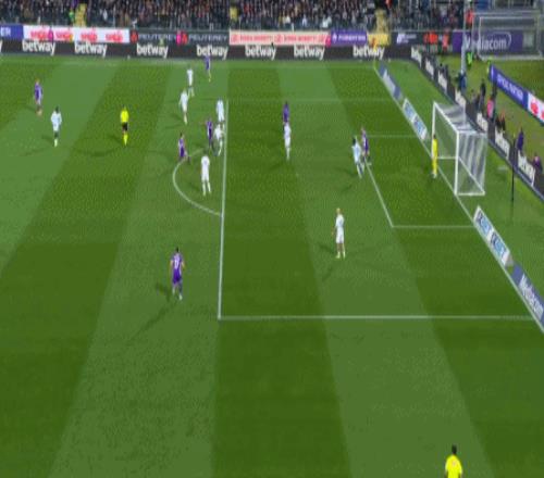 第62分鍾,懷特禁區內無人盯防狀態輕鬆推射,2比0;